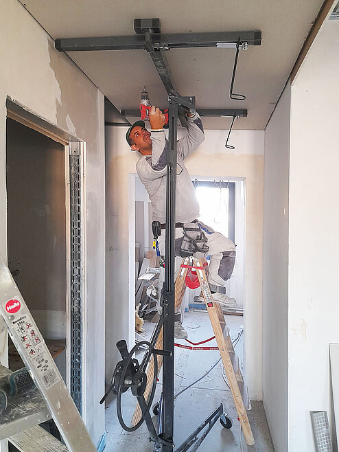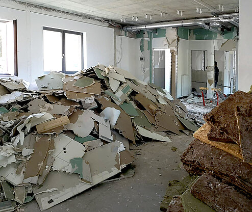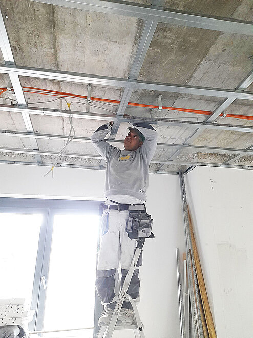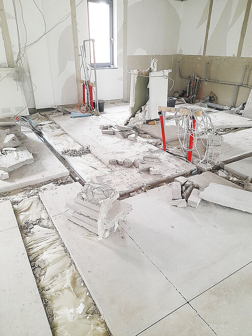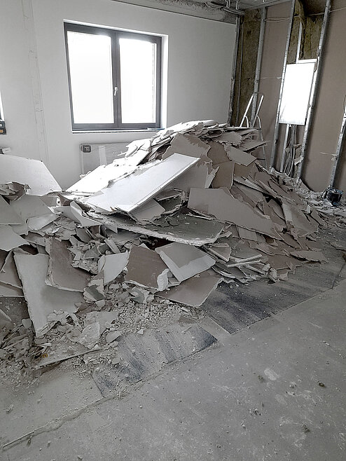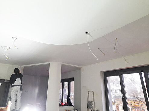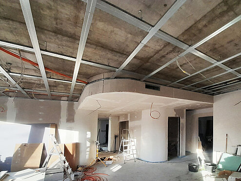 Angefangen von den Abrissarbeiten, Entsorgung der angefallenen Materialien, Aufbau von Deckenkonstruktionen, Bauen von runden Raumkonstruktionen, fachgerechte Ausstattung des Röntgenraumes, Esstrichschlitze, Feinspachtelarbeiten, Streich- und Tapezierarbeiten, Trockenbau und Bodenverlegearbeiten. Die gute Zusammenarbeit mit anderen Gewerken führte zu einer Punktgenauen Fertigstellung und Inbetriebnahme der neuen Praxisräume.